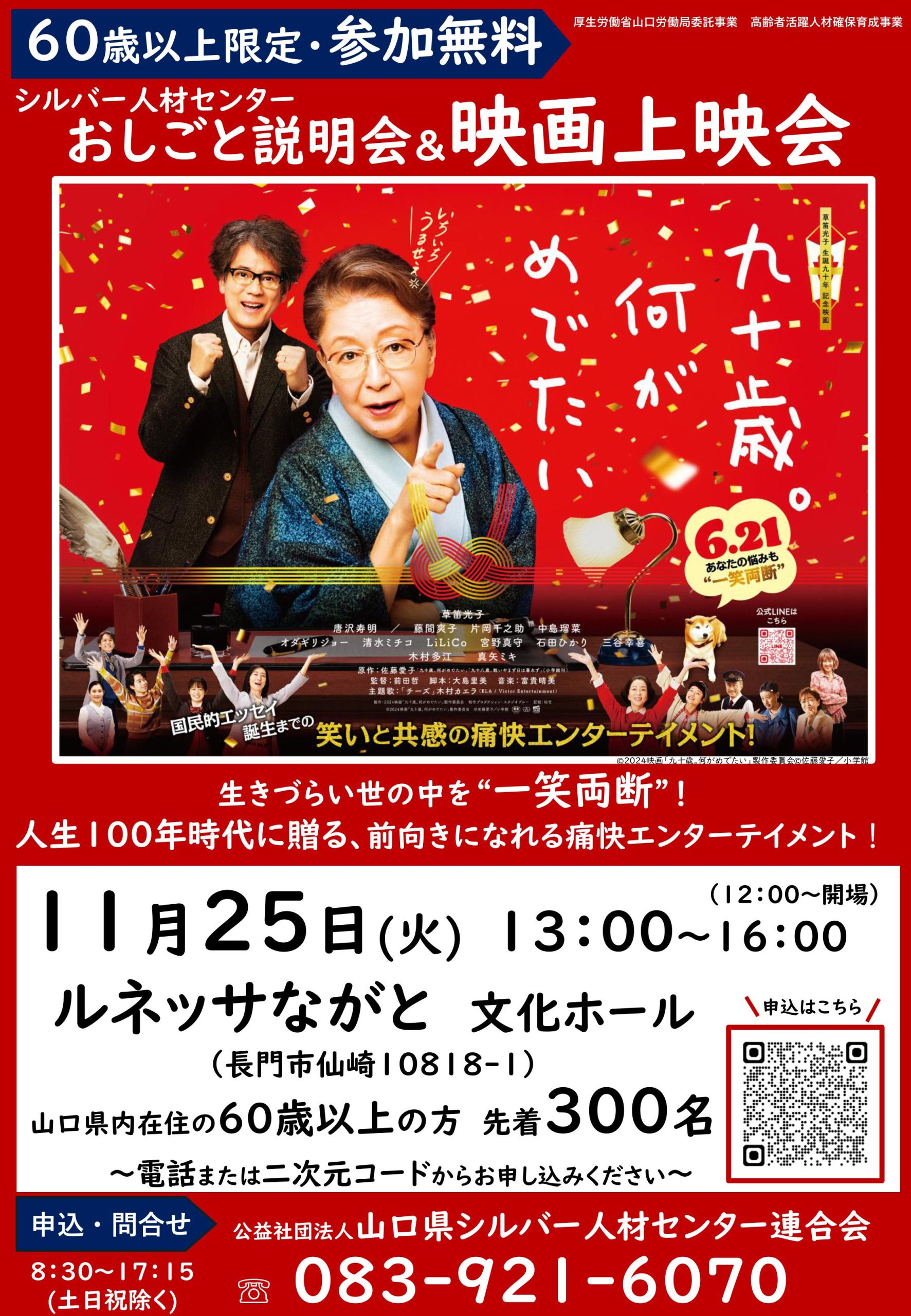 シルバー人材センター おしごと説明会&映画「九十歳。何がめでたい」無料上映会